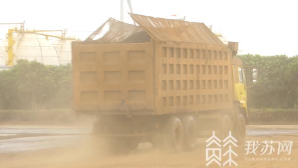 在盐城市大丰区大丰港记者看到,许多满载着货物的自卸货车正在港口附近的道路上行驶,这些货车的车厢几乎都没有进行覆盖,所到之处,尘土飞扬。一位知情司机告诉记者,这些货车多数都是大丰海港物流公司的,一般在港口的码头装货,然后送往货物堆场和附近的一家钢铁厂,而这些货车,几乎每辆都超载。